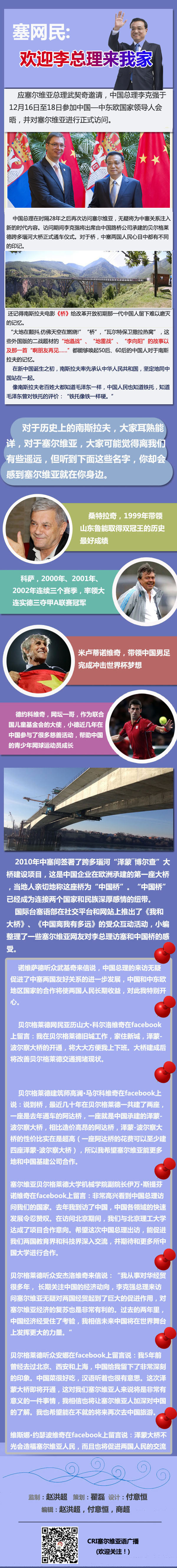 應(yīng)塞爾維亞總理武契奇邀請(qǐng),中國(guó)總理李克強(qiáng)于12月16日至18日參加中國(guó)-中東歐領(lǐng)導(dǎo)人會(huì)晤,并對(duì)塞爾維亞進(jìn)行正式訪(fǎng)問(wèn)。