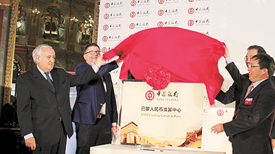 中國(guó)銀行巴黎分行人民幣清算中心揭牌。邢雪 攝