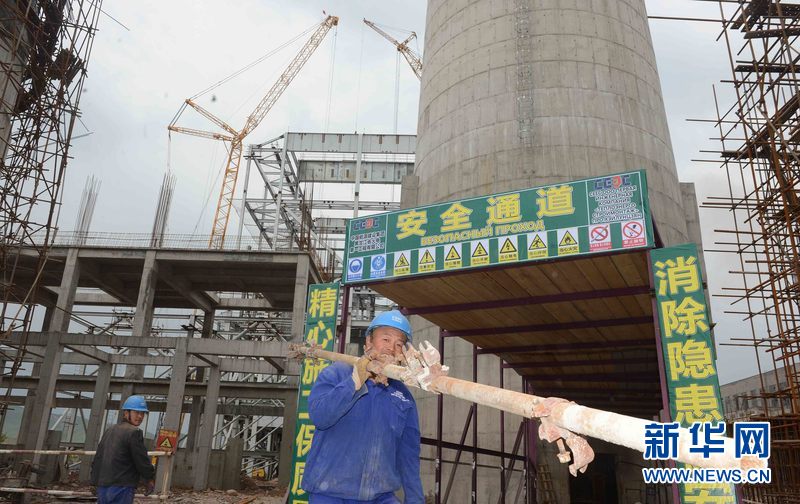 ?5月1日,來自中國能建集團黑龍江省火電第一工程有限公司的工人在哈爾濱電氣國際工程公司承建的安格連熱電廠改造項目現(xiàn)場施工。沙達提 攝