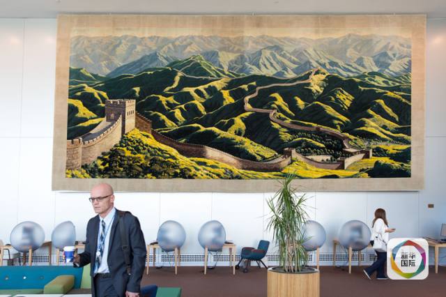 在恢復(fù)聯(lián)合國合法席位后不久的1974年,中國將一條長10米、寬5米的長城掛毯贈(zèng)送給了聯(lián)合國。它由天津地毯公司所屬各廠的15名織毯高手以248種色紗織成,表現(xiàn)了北京居庸關(guān)長城的雄姿。40多年來,它一直高掛在聯(lián)合國代表休息北大廳里,不少來聯(lián)合國參觀的人在經(jīng)過時(shí)都忍不住駐足觀看。