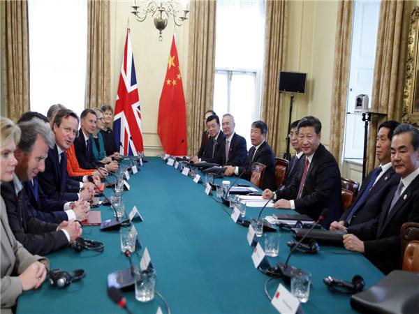 習近平說:“中英關系和中歐關系發(fā)展面臨繼往開來的重要機遇。英國是歐盟重要成員國,中英關系同中歐關系相輔相成?!?/p>