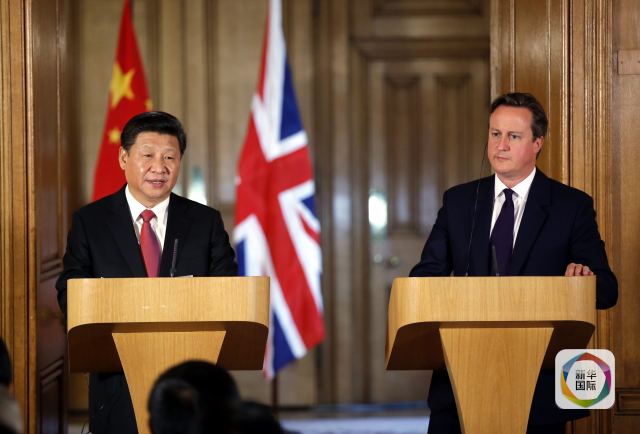 10月21日,國家主席習近平在倫敦唐寧街首相府同英國首相卡梅倫舉行會談。這是會談結(jié)束后,習近平和卡梅倫共同會見記者。 新華社記者鞠鵬攝