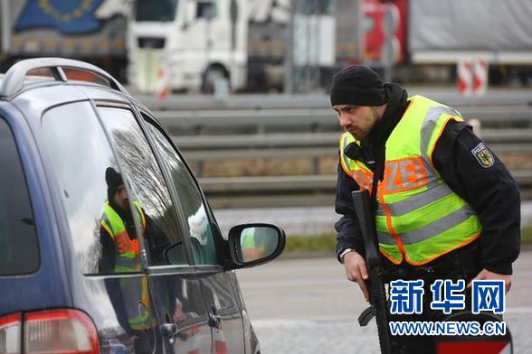 在比利時東部靠近德國亞琛的邊界,德國警方設置了路障,檢查過往車輛。記者在高速公路檢查站看到,兩名德國特警把守兩邊,所有車輛逐一通過。需要進一步檢查的車輛按指揮進入特定區(qū)域,德國警方要求被檢車輛司機出示證件,并對汽車內(nèi)部進行仔細翻查。檢查站中??苛耍保岸噍v各型警車,值勤警察荷槍實彈,檢查站旁還有一架警方直升機。