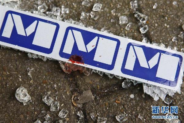 ??? 這是3月22日在比利時首都布魯塞爾馬埃勒貝克地鐵站一個出口處拍攝的沾有血滴的地鐵標志。比利時聯(lián)邦檢察院22日發(fā)表聲明稱,當天上午在布魯塞爾扎芬特姆機場和市區(qū)地鐵站發(fā)生的爆炸是自殺式恐怖襲擊。 新華社記者葉平凡攝