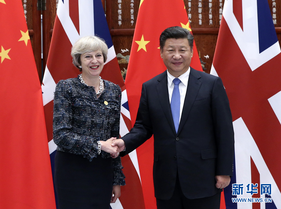 9月5日,國家主席習近平在杭州會見來華出席二十國集團領(lǐng)導人峰會的英國首相特雷莎·梅。 新華社記者龐興雷攝