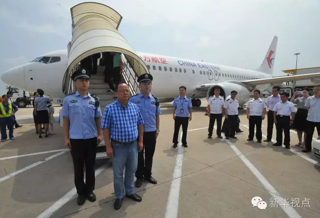 2016年7月13日,在武漢天河機(jī)場,“百名紅通人員”朱海平從美國回國投案自首。標(biāo)志著“百名紅通人員”已有三分之一落網(wǎng)。新華社發(fā)(楊平攝)