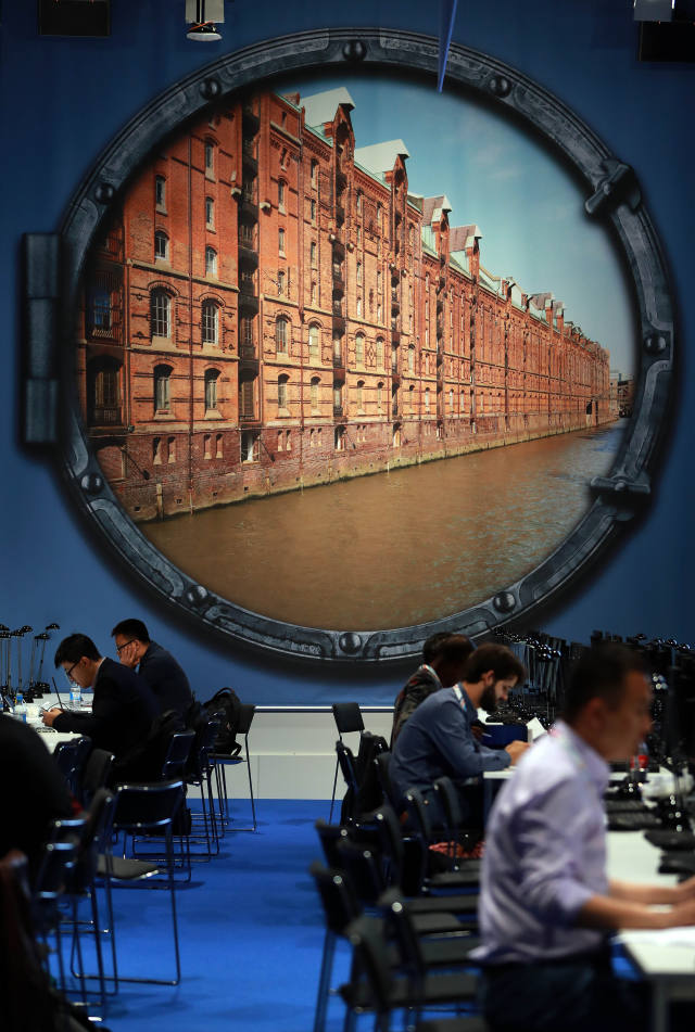↑這是7月6日在德國漢堡拍攝的G20領(lǐng)導(dǎo)人峰會國際新聞中心一景。新華社記者羅歡歡攝