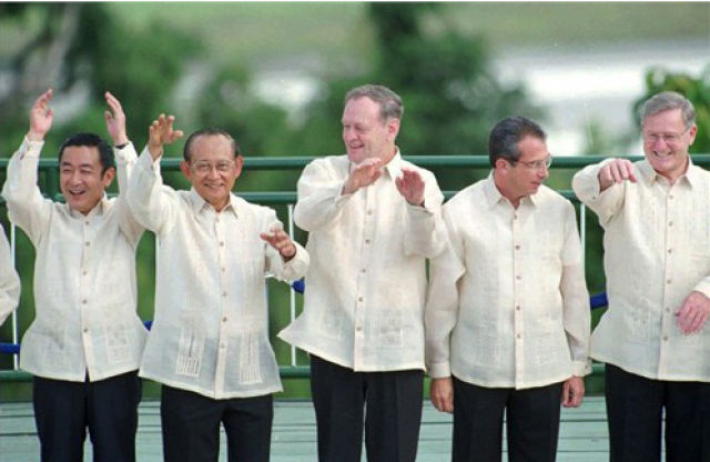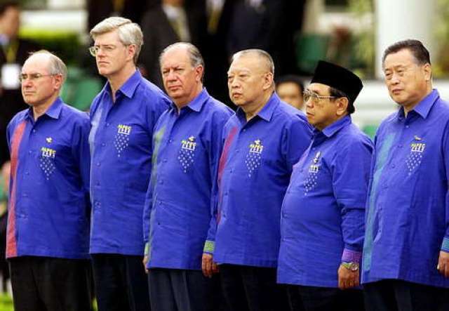 1993年,首屆APEC領(lǐng)導(dǎo)人非正式會議在美國西雅圖召開。各經(jīng)濟(jì)體領(lǐng)導(dǎo)人不帶助手和隨身翻譯,不穿正裝。從那以后,在一年一度的APEC領(lǐng)導(dǎo)人非正式會議期間,東道主通常會為與會領(lǐng)導(dǎo)人提供特別制作的當(dāng)?shù)貍鹘y(tǒng)服裝,在宣介東道主傳統(tǒng)文化的同時(shí),也體現(xiàn)“亞太大家庭”的理念。