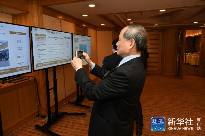圖為嘉賓觀看新華社新聞信息產(chǎn)品展示。