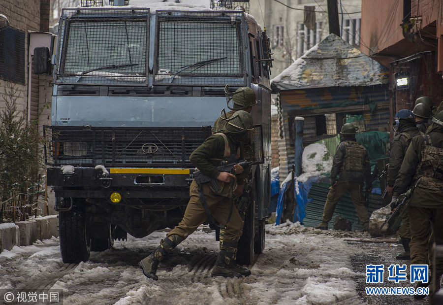 2月12日,印控克什米爾斯利那加,印度政府軍與疑似激進(jìn)分子展開槍戰(zhàn)。兩名持槍歹徒在他們的營地附近開火致一名印度準(zhǔn)軍事部隊(duì)士兵死亡。(圖片來源:視覺中國)