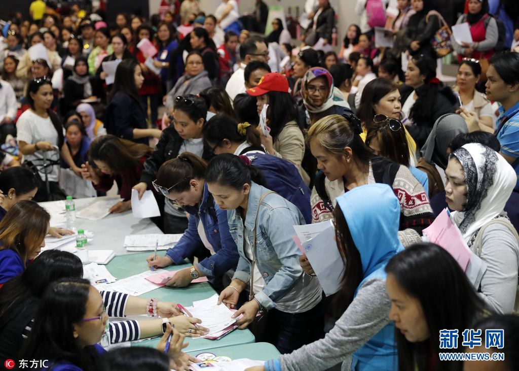 當?shù)貢r間2018年2月21日,菲律賓馬尼拉,從科威特返回的菲律賓海外勞工抵達馬尼拉國際機場。據(jù)外媒報道,宿霧太平洋航空公司為至少396名海外菲律賓工人提供空運支持,助其免費搭乘飛機回家。據(jù)悉,菲律賓政府已下令禁止民眾前往科威特務工。據(jù)悉,菲律賓總統(tǒng)杜特爾特稱,近來有在科威特打工的菲律賓女傭因不堪虐待或性侵選擇自殺。(圖片來源: 東方IC)