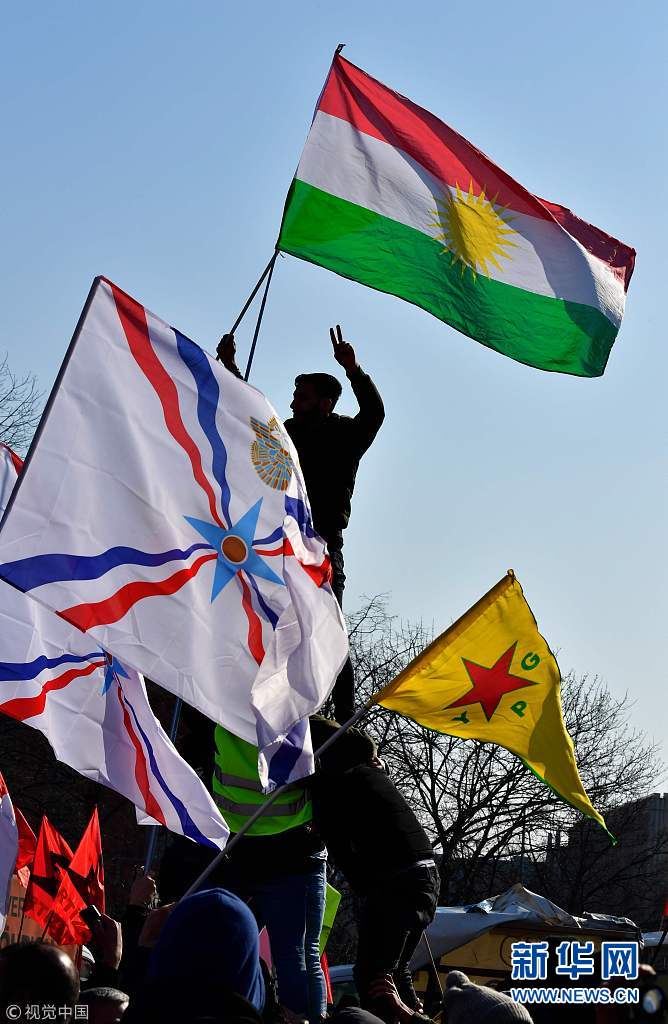 當?shù)貢r間2018年3月3日,德國柏林,當?shù)孛癖娕e行游行,抗議土耳其對敘利亞阿夫林地區(qū)的庫爾德人采取軍事行動。(圖片來源:視覺中國)