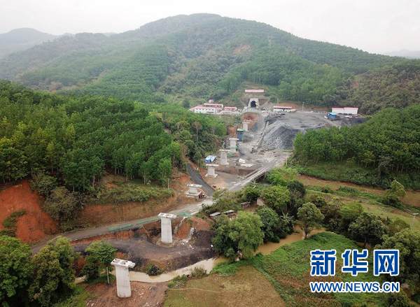 這是3月27日在老撾南塔省航拍的正在施工建設(shè)中的橋梁。新華網(wǎng)發(fā) 劉艾倫攝