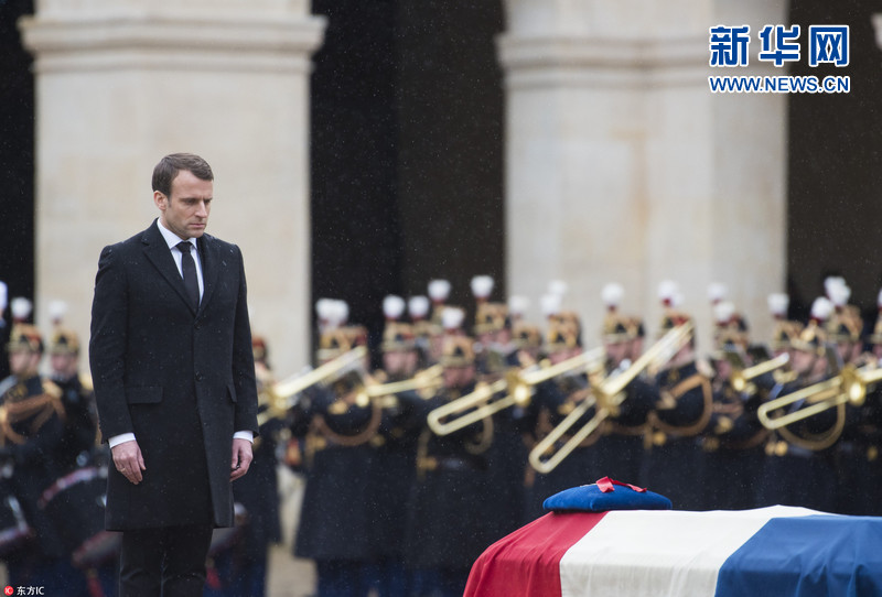 法國為英雄警察舉行國葬 馬克龍偕妻子出席神情嚴(yán)肅