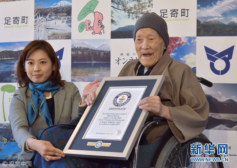4月10日,日本足寄,日本男子Masazo Nonaka以112歲259天的年齡,獲得吉尼斯認證的世界目前在世年齡最長的男性。 (圖片來源:視覺中國)