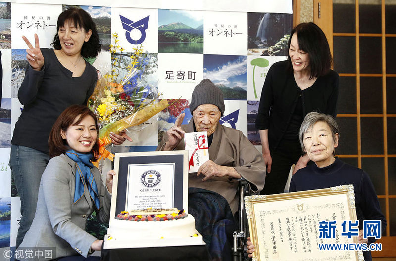 日本老人獲世界最長壽男性紀(jì)錄 頒獎現(xiàn)場喜笑顏開