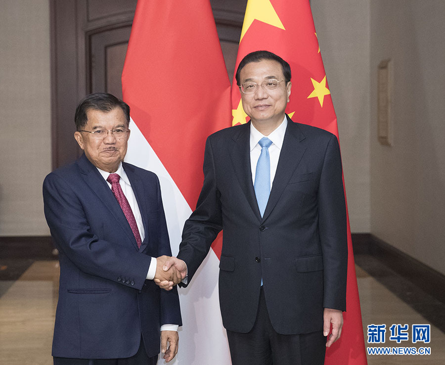 新華社雅加達5月7日電(記者彭天瀟 余謙梁)當(dāng)?shù)貢r間5月7日晚,國務(wù)院總理李克強在雅加達下榻飯店會見印度尼西亞副總統(tǒng)卡拉。