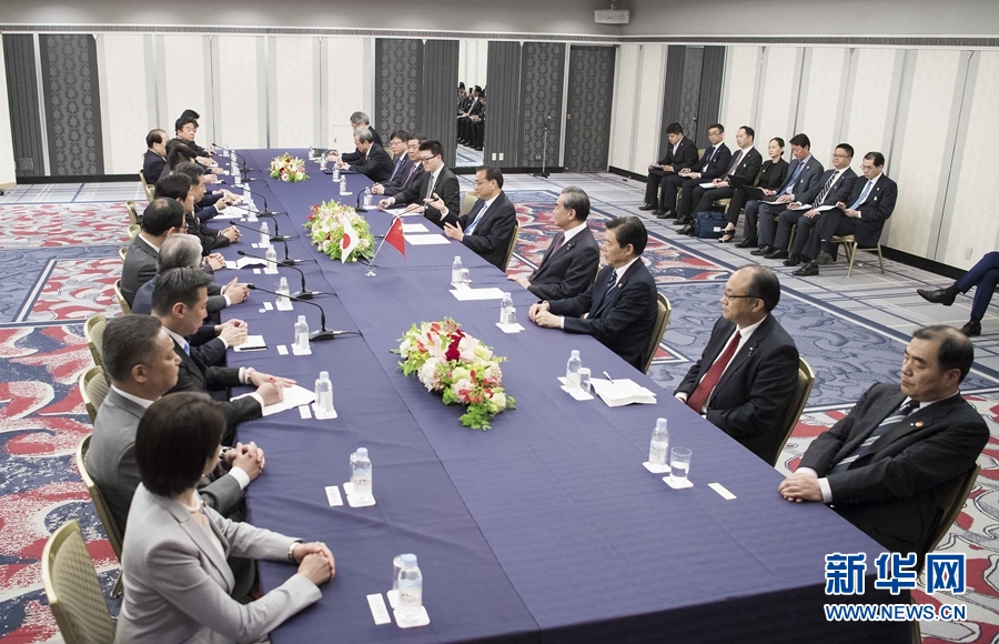 當(dāng)?shù)貢r(shí)間5月10日下午,國(guó)務(wù)院總理李克強(qiáng)在東京下榻飯店會(huì)見日本在野黨負(fù)責(zé)人。新華社記者 李濤 攝
