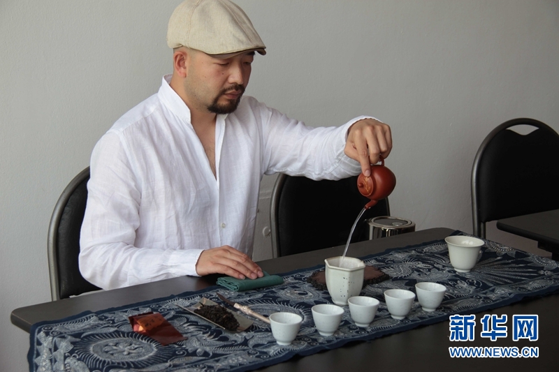 中國國家一級評茶師戎新宇在表演中國茶道。新華網(wǎng)發(fā)