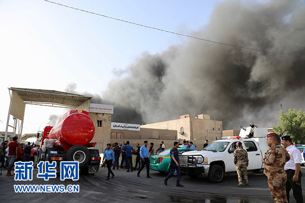 6月10日,在伊拉克首都巴格達,伊拉克安全人員和消防人員在火災(zāi)現(xiàn)場工作。新華社發(fā)(哈利勒·達伍德 攝)