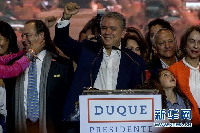 新華社波哥大6月17日電(記者何珊)哥倫比亞總統(tǒng)選舉第二輪投票17日在平靜中結(jié)束。右翼候選人杜克戰(zhàn)勝左翼候選人彼得羅,當(dāng)選哥倫比亞新一任總統(tǒng)。杜克將于8月7日宣誓就職,任期至2022年。
