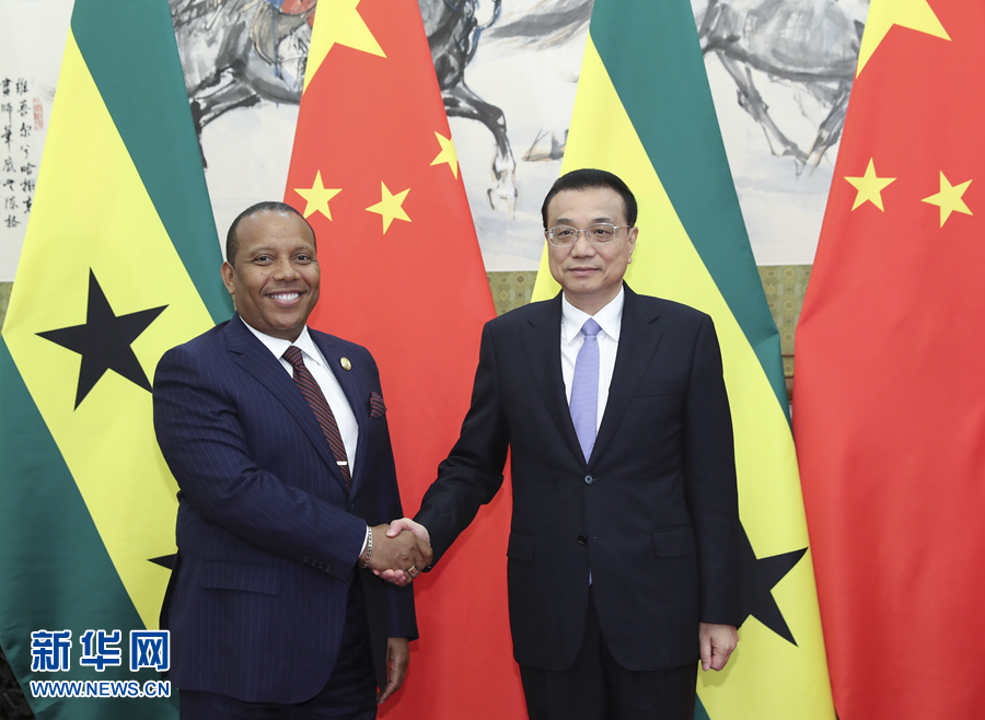 9月5日,國務(wù)院總理李克強在北京釣魚臺國賓館會見圣多美和普林西比總理特羅瓦達。 新華社記者 龐興雷 攝