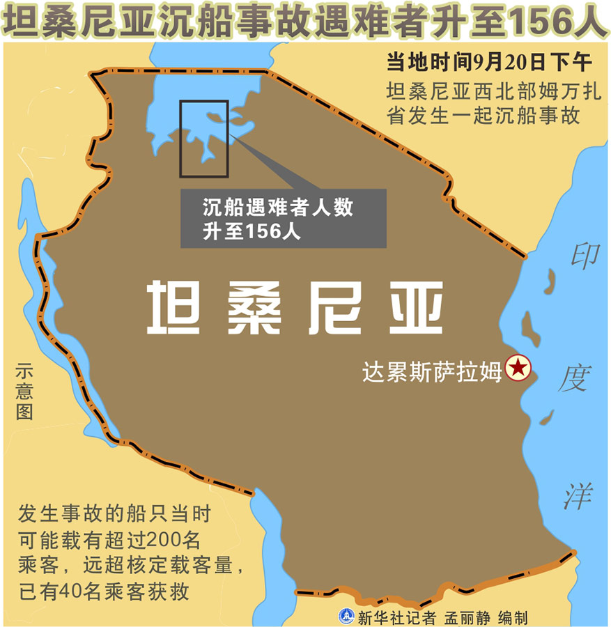 新華社達累斯薩拉姆9月22日電(記者李斯博 高竹)坦桑尼亞官員22日說,該國西北部姆萬扎?。玻叭瞻l(fā)生的沉船事故已造成至少156人死亡。