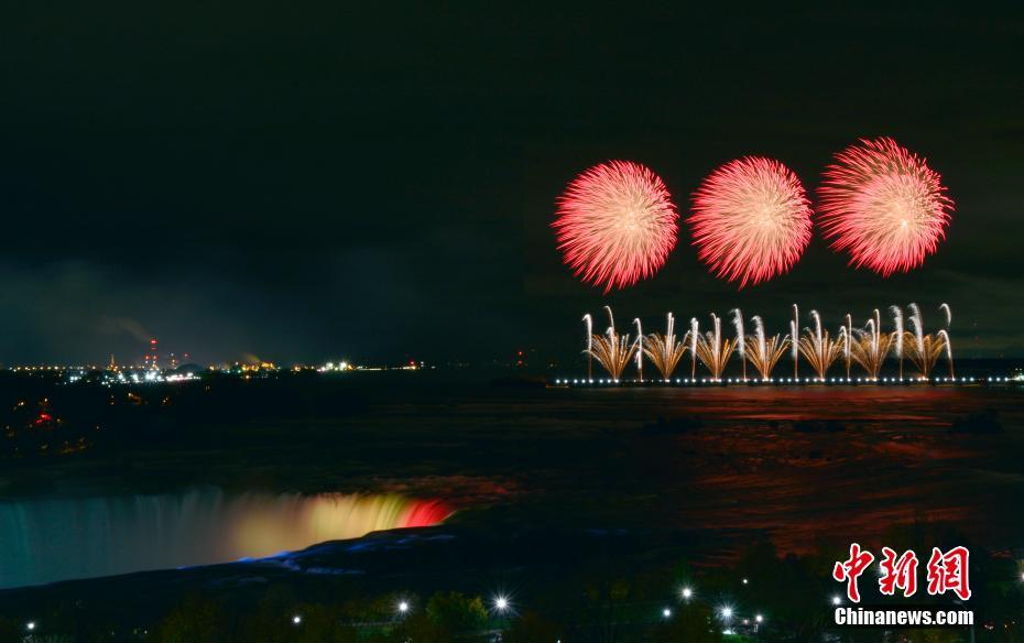 來自“煙花之鄉(xiāng)”中國湖南瀏陽的璀璨煙花點(diǎn)亮夜空。中新社記者 廖溟 攝