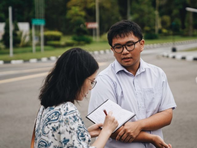 文萊大學(xué)生賴鏡文在接受記者采訪。新華社記者畢曉洋攝