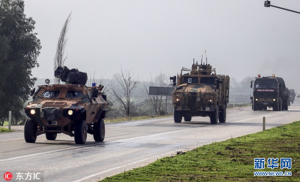 當?shù)貢r間2018年12月24日,土耳其哈塔伊,土耳其裝甲車被派往敘利亞邊境的基利斯地區(qū),增援邊境部隊。(圖片來源:東方IC)