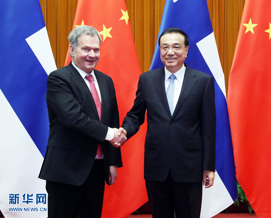 李克強表示,中芬關系長期以來保持良好穩(wěn)定發(fā)展,走在中國同西方國家關系的前列。昨天,習近平主席同總統先生舉行了富有成果的會談,共同規(guī)劃兩國關系未來發(fā)展。中方愿同芬方繼續(xù)努力,推動中芬合作取得更多新成果,為中芬關系不斷注入新動力。