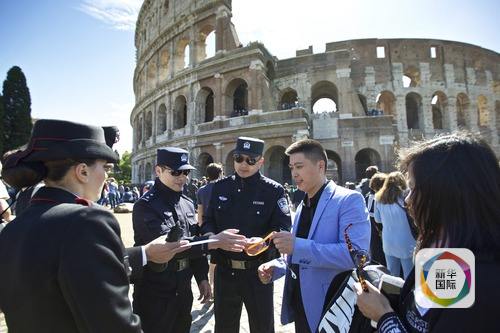 2016年5月2日,中方警員與意大利同行在羅馬斗獸場外執(zhí)行聯(lián)合巡邏。新華社記者金宇攝