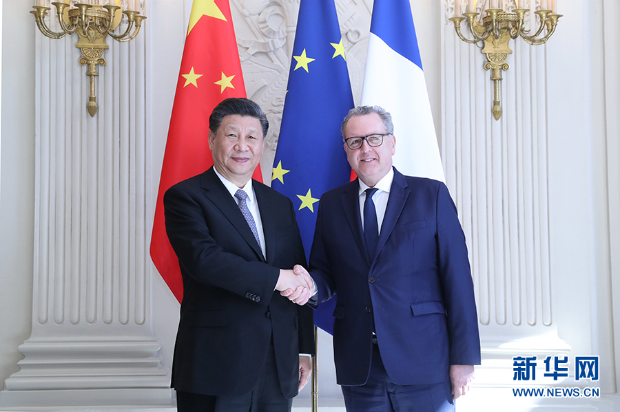 3月26日,國家主席習(xí)近平在巴黎會見法國國民議會議長費朗。 新華社記者 鞠鵬 攝
