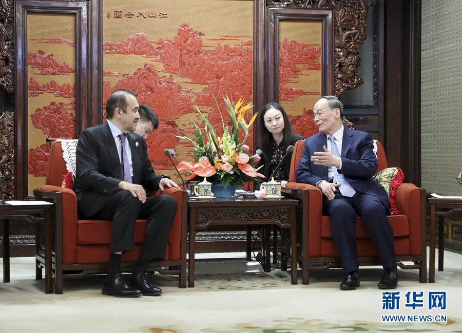 新華社北京4月8日電(記者伍岳)國(guó)家副主席王岐山8日在中南海紫光閣會(huì)見哈薩克斯坦國(guó)家安全委員會(huì)主席馬西莫夫。