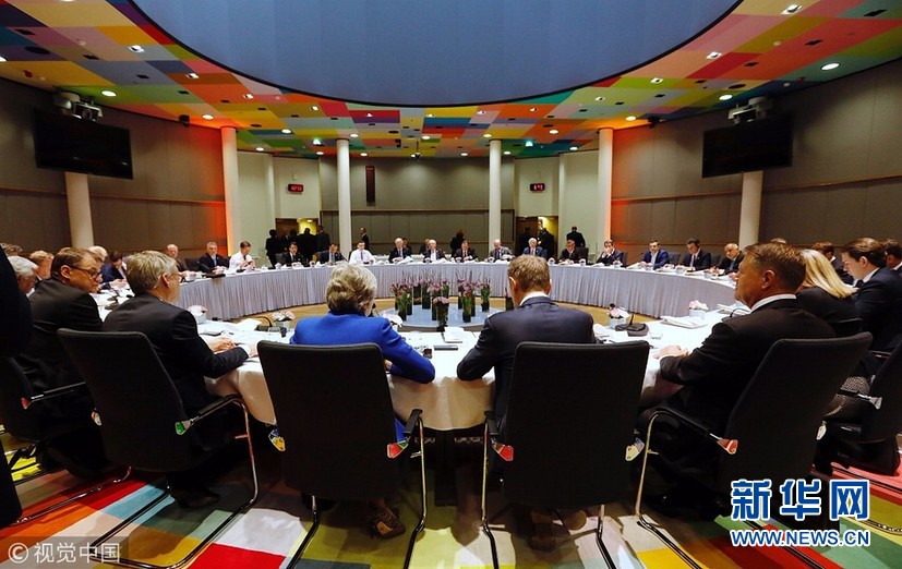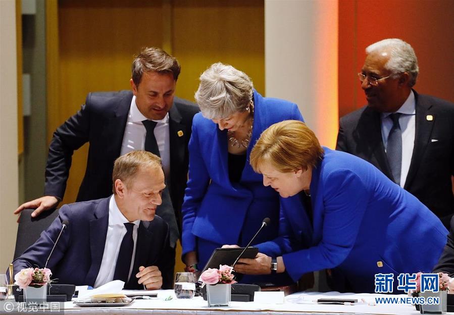 當(dāng)?shù)貢r(shí)間2019年4月10日,比利時(shí)布魯塞爾,歐盟領(lǐng)導(dǎo)人會(huì)議召開,討論英國(guó)“脫歐”議題。據(jù)路透社消息,歐盟各成員國(guó)達(dá)成一致,允許英國(guó)延期“脫歐”至10月底,6月份歐盟還將對(duì)此決定再次評(píng)估。歐洲理事會(huì)主席圖斯克表示,歐盟各成員國(guó)達(dá)成一致,允許英國(guó)延期“脫歐”,現(xiàn)在他將與英國(guó)首相特雷莎·梅舉行會(huì)談,確定英國(guó)是否接受這一提議。(圖片來源:視覺中國(guó))