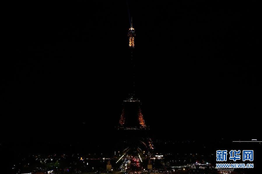 當(dāng)?shù)貢r(shí)間2019年4月21日,法國巴黎,法國埃菲爾鐵塔熄燈悼念斯里蘭卡爆炸遇難者。(圖片來源:視覺中國)