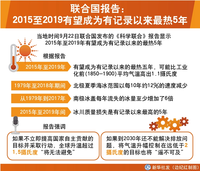 新華社聯(lián)合國(guó)9月22日電(記者王建剛)聯(lián)合國(guó)22日發(fā)布的一份報(bào)告顯示,2015年至2019年有望成為有記錄以來的最熱5年。