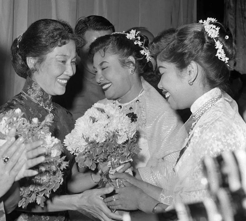 ▲1961年1月6日,中國(guó)電影周在仰光總統(tǒng)電影院舉行開(kāi)幕式。圖為緬甸電影演員向中國(guó)電影演員張瑞芳(左)獻(xiàn)花。