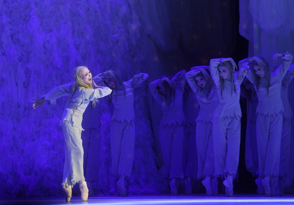 2017年5月19日,日本松山芭蕾舞團(tuán)在北京人民大會(huì)堂演出《白毛女》。這是該團(tuán)第15次訪華演出。該團(tuán)團(tuán)長(zhǎng)、第二代白毛女扮演者——69歲的森下洋子在劇中飾演“喜兒”。新華社記者金良快攝
