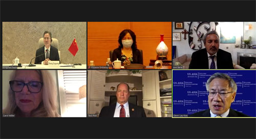 這次視頻對話由中國人民外交學(xué)會和美國美亞學(xué)會合作舉辦。上述兩機構(gòu)負(fù)責(zé)人等出席了對話。
