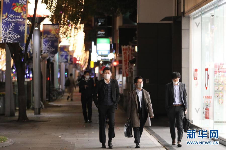 12月10日,在日本愛知縣名古屋市,人們戴口罩出行。新華社記者 杜瀟逸 攝