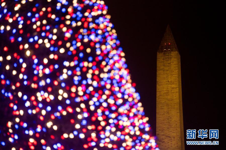 這是12月24日在美國華盛頓拍攝的華盛頓紀念碑和國家圣誕樹。
