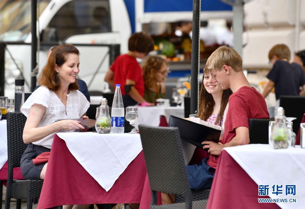 6月24日,人們在意大利羅馬一家餐館的戶外區(qū)域消費(fèi)。