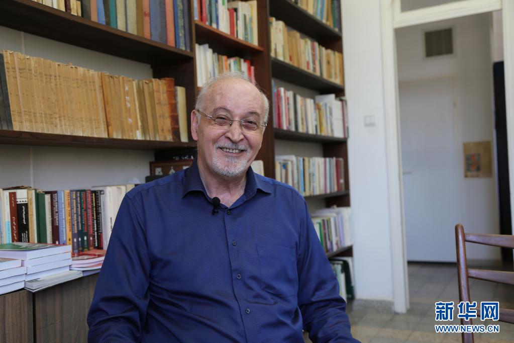 6月7日,以色列共產黨政治局委員、前總書記伊薩姆·馬胡勒在海法接受新華社記者專訪。新華社發(fā)