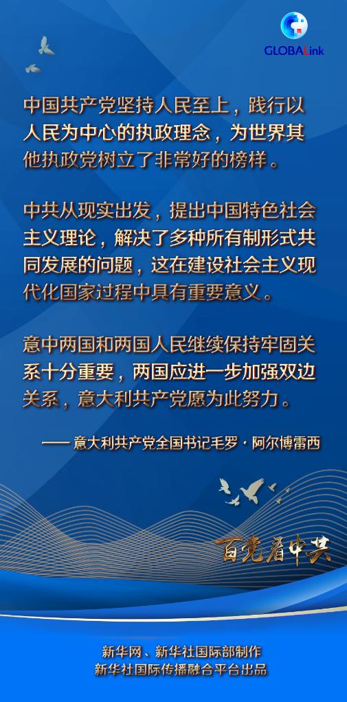 阿爾博雷西說,一百年來,中國共產(chǎn)黨帶領(lǐng)中國人民取得了巨大成就。中共積累的經(jīng)驗(yàn)是國際共產(chǎn)主義運(yùn)動史上的亮點(diǎn),中共在國際共運(yùn)歷史上樹立了重要標(biāo)桿。