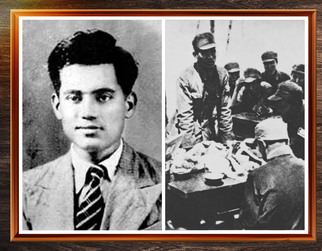左图是柯棣华;右图是1941年12月,柯棣华(中间站立者)给晋察冀八路军干部作报告。