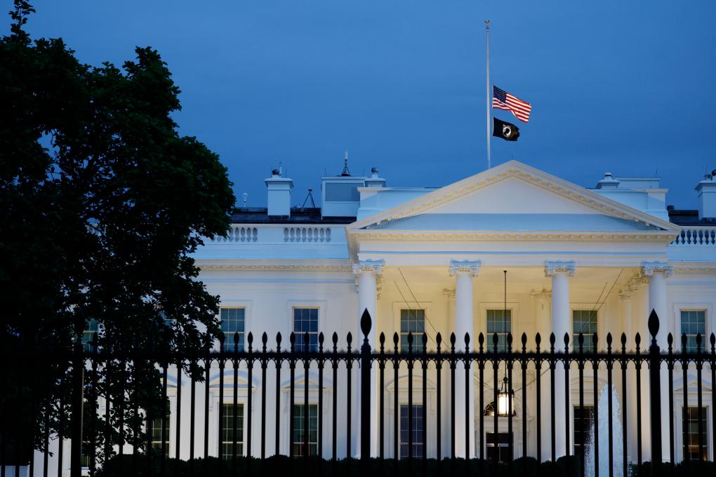 2022年5月24日,在美国首都华盛顿,白宫降半旗向得克萨斯州枪击事件受害者致哀。新华社发(沈霆摄)