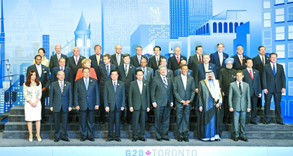 2010年6月,二十國(guó)集團(tuán)第四次峰會(huì)在加拿大多倫多舉行。多倫多峰會(huì)確定了增長(zhǎng)的主調(diào),信守并履行了“強(qiáng)勁、可持續(xù)和平衡增長(zhǎng)框架”和金融監(jiān)管改革等主要日程,在發(fā)達(dá)國(guó)家削減財(cái)政赤字、國(guó)際金融機(jī)構(gòu)治理改革、反對(duì)貿(mào)易保護(hù)主義等問題上提出了一些具體的時(shí)間表,并強(qiáng)調(diào)了二十國(guó)集團(tuán)的首要任務(wù)是確保和加強(qiáng)經(jīng)濟(jì)復(fù)蘇。